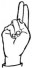 На ћирилици написано МИА БЕКОЊА састоји се из 9 слова [?]. Исписано ћириличном једноручном азбуком за глувонеме: